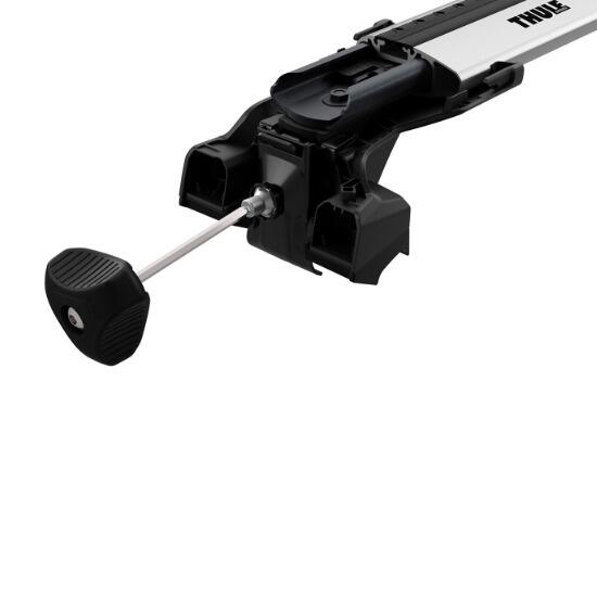 Operatiunea de strangere a barelor pe masina se face foarte usor, cu ajutorul unei chei speciale livrate in pachet. In privinta protectiei antifurt, capacele de acces la sistemul de strangere sunt echipate cu butuci cu cheie.