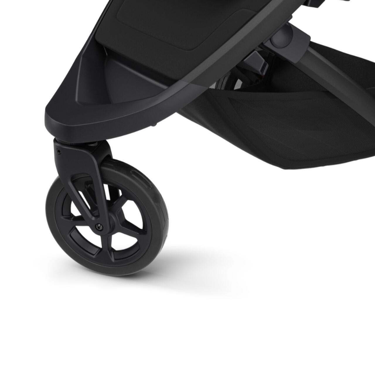 Roata frontala pivotanta cu suspensie poate fi blocata in pozitie fixa pentru o plimbare confortabila oriunde.