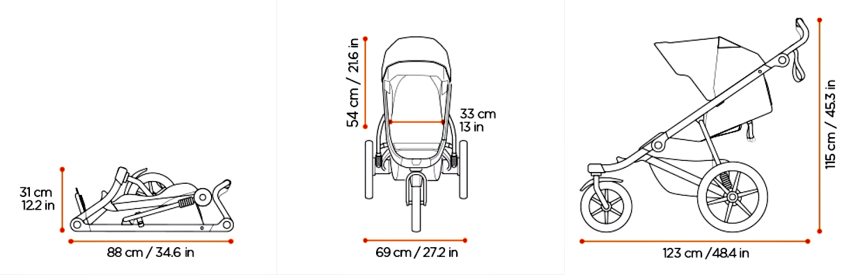 Dimensiuni Thule Urban Glide 3 pliat si nepliat: