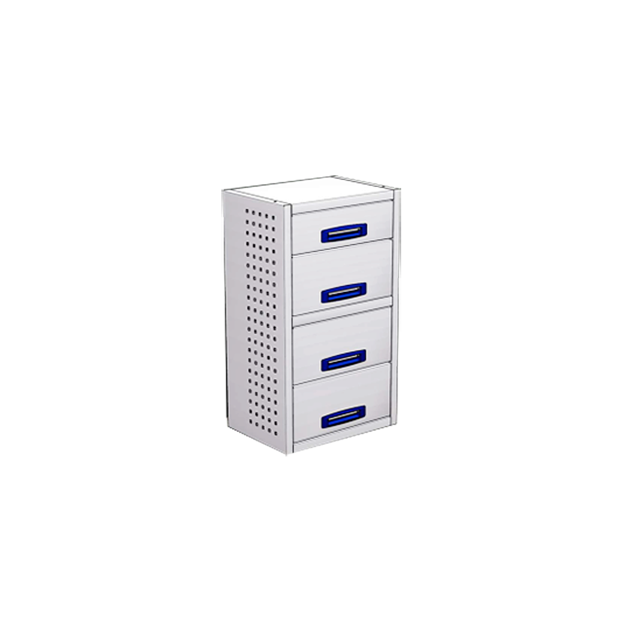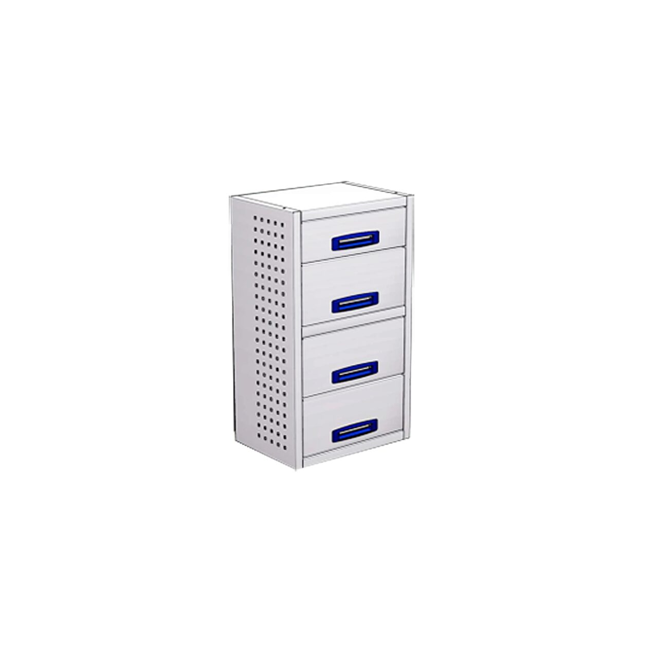 Dulap cu 4 sertare si separatoare incluse. Poate fi util atat in autoutilitara cat si in atelier.