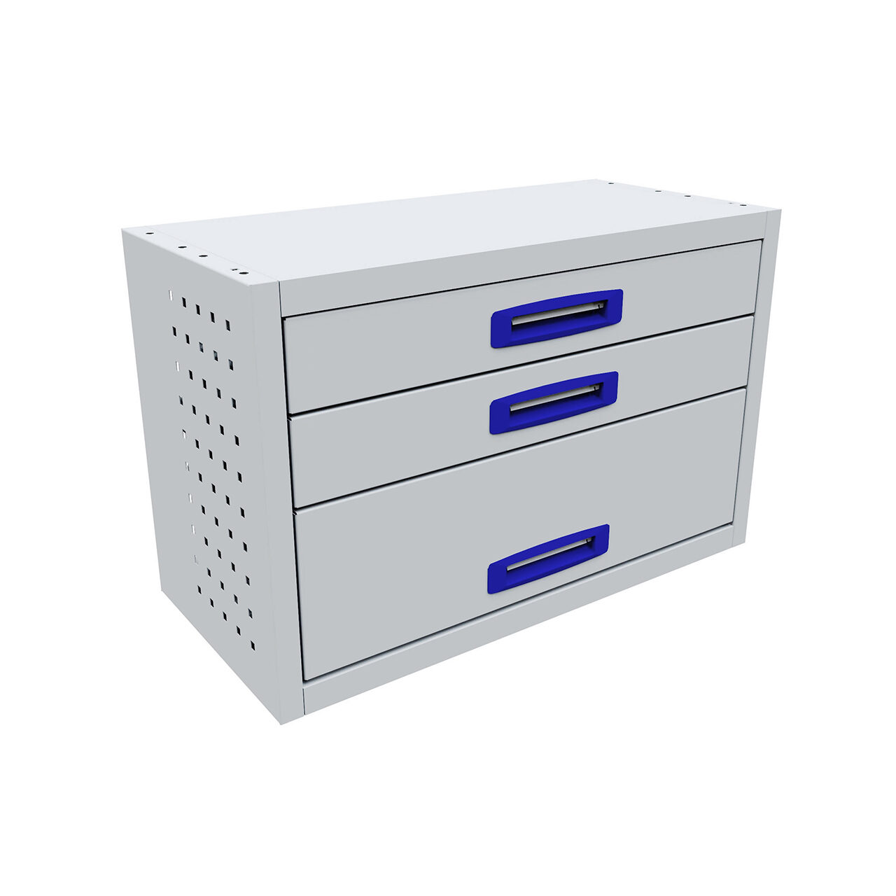 Dulap cu 3 sertare si separatoare incluse. Poate fi util atat in autoutilitara cat si in atelier.