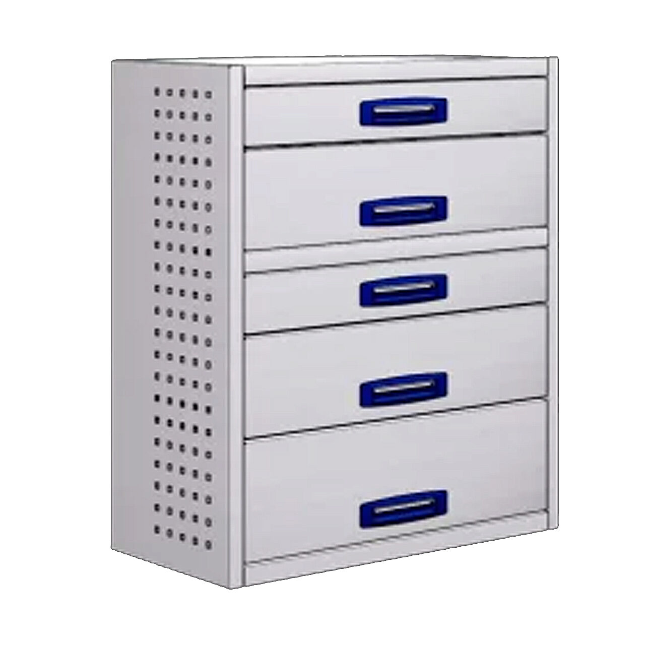 Dulap cu 5 sertare si separatoare incluse. Poate fi util atat in autoutilitara cat si in atelier.