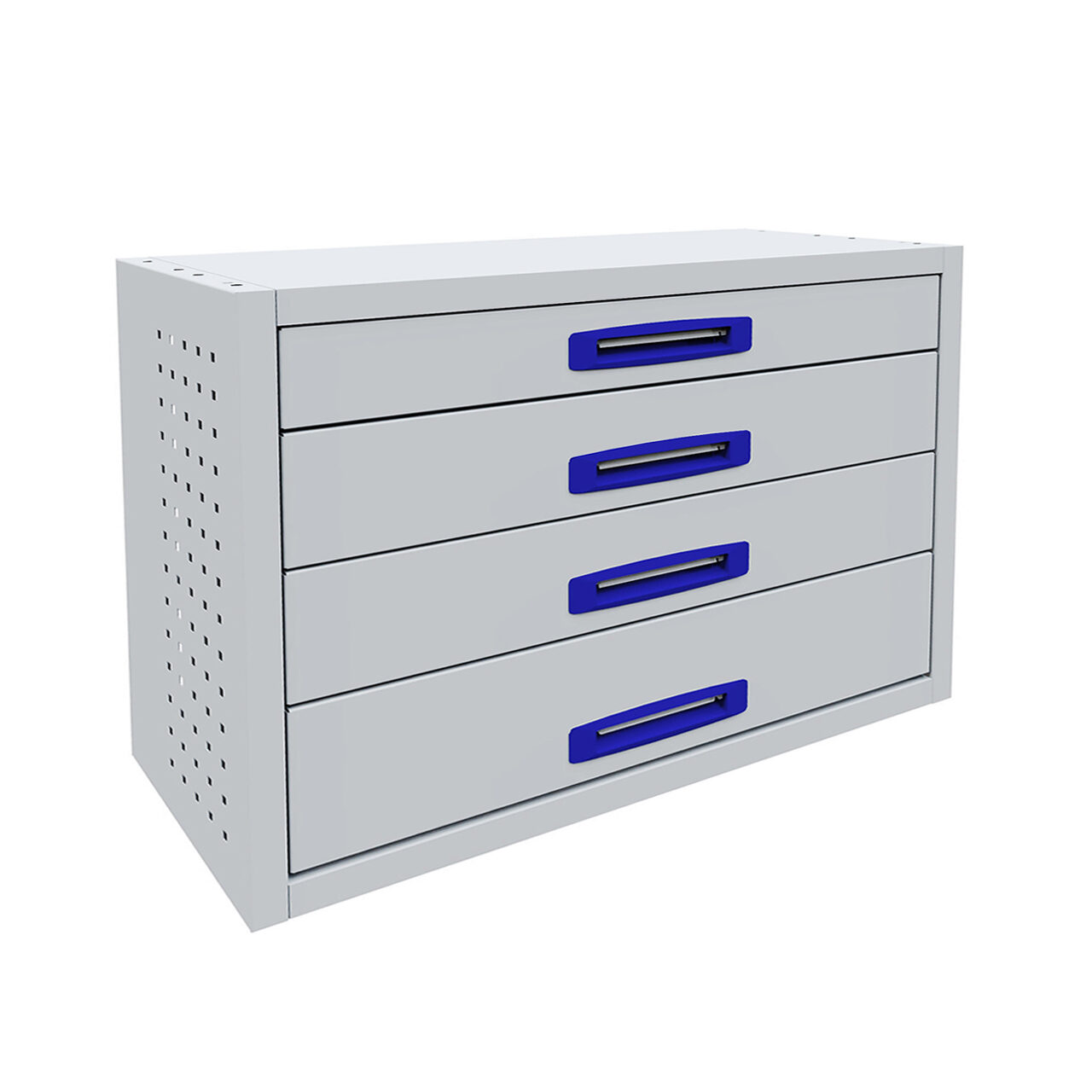 Dulap cu 4 sertare si separatoare incluse. Poate fi util atat in autoutilitara cat si in atelier.