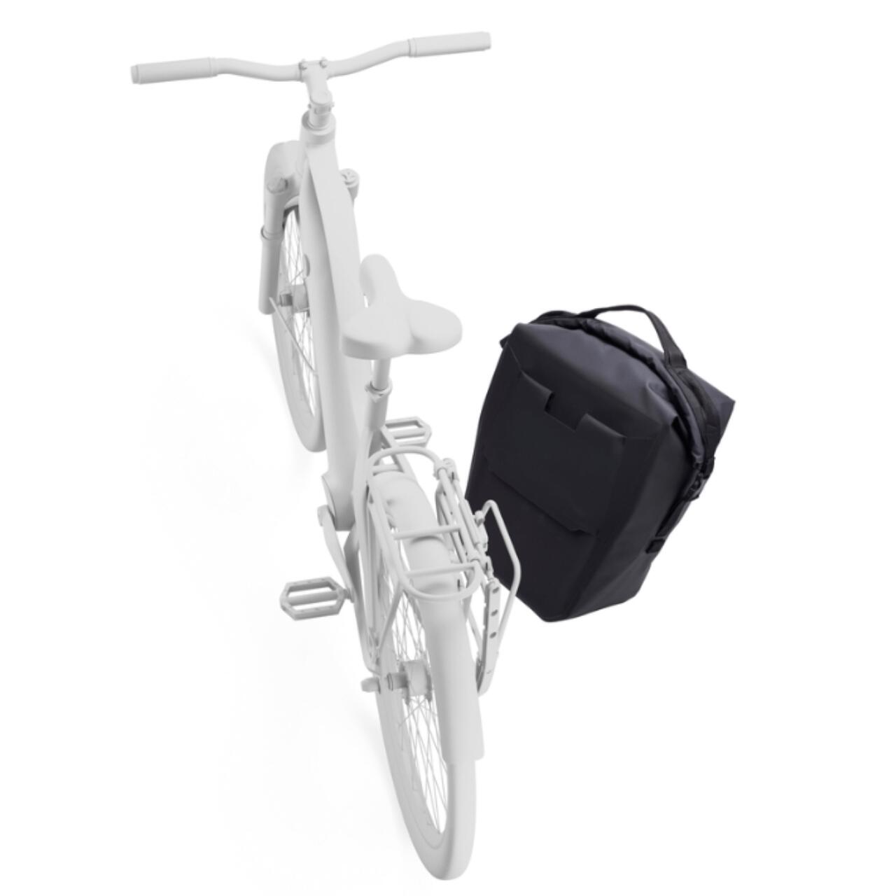 Aceasta geanta pentru bicicleta este compatibila cu sistemul Thule InLock (necesar pentru utilizare), ceea ce permite atasarea sau detasarea in cateva secunde. Pur si simplu glisezi geanta pe cadrul de montare, o fixezi printr-un clic si te bucuri de o deplasare fara zgomote sau vibratii. Detasarea este la fel de simpla — tragi de curea si geanta se desprinde imediat. Functioneaza cu portbagajul deja montat pe bicicleta sau se integreaza perfect cu orice generatie a Thule Tour Rack.
