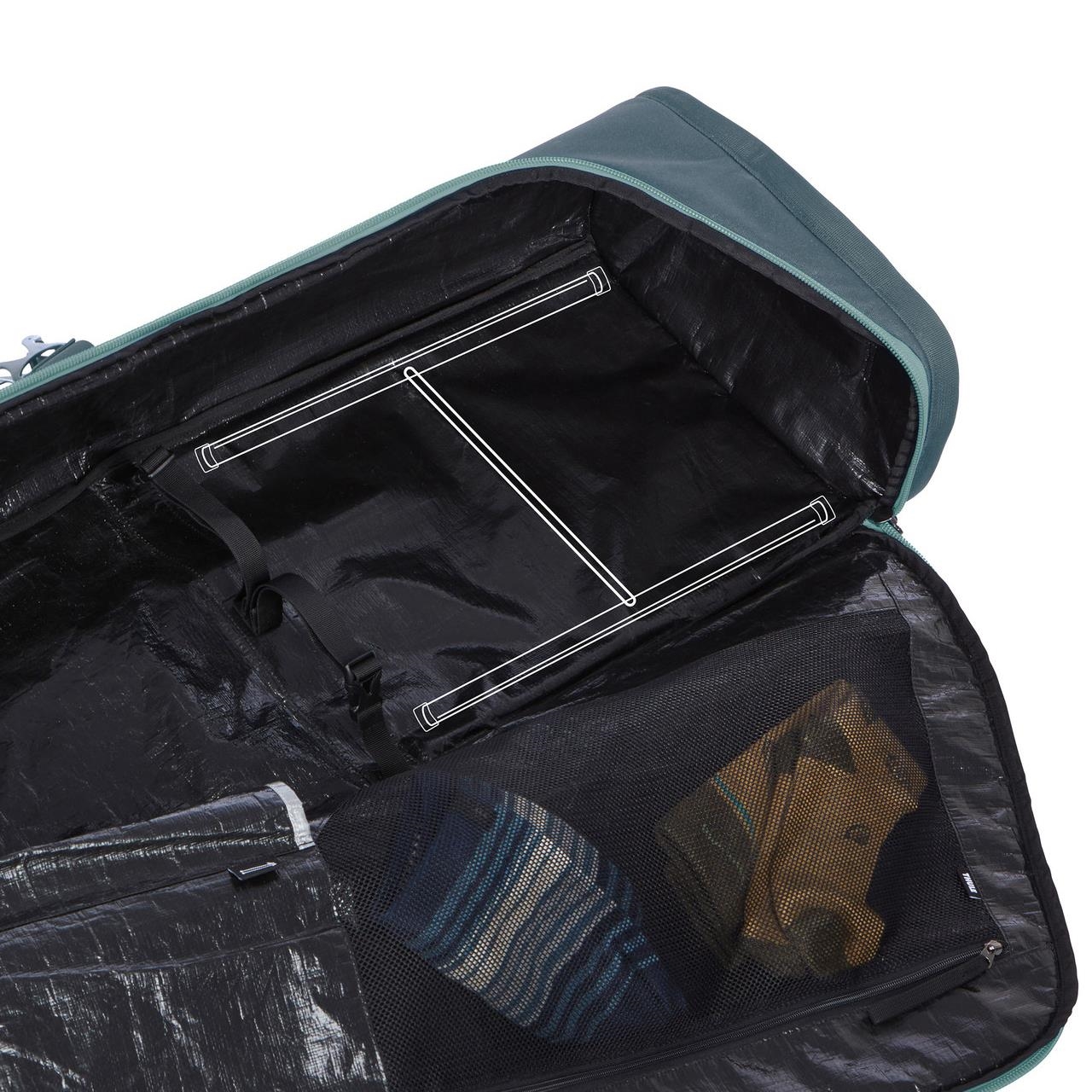- Interiorul este divizat in doua, pentru a separa cele 2 perechi de skiuri intre ele. Suplimentar exista un buzunar cu fermoar pentru diverse lucruri si accesorii, cat si spatiul dedicat betelor.