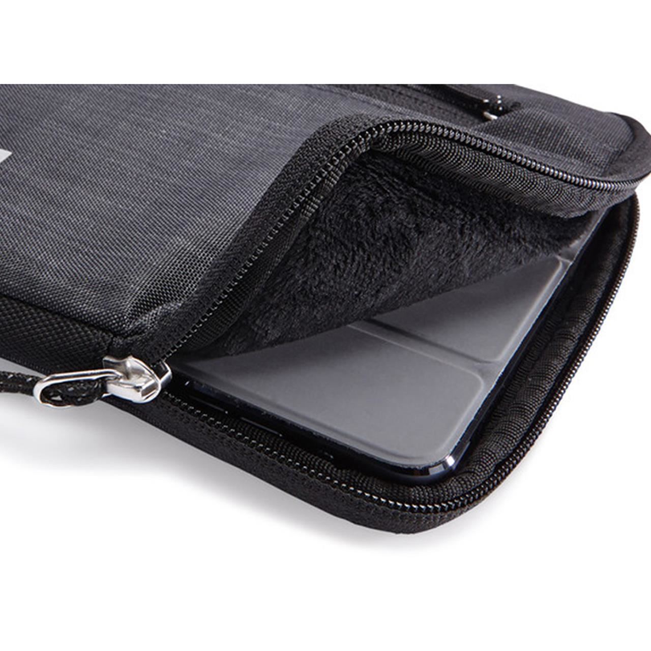 Husa de protectie optimizata, cu captuseala interioara de plus, rezistenta la apa, ofera protectie unui iPad mini si unui iPhone.