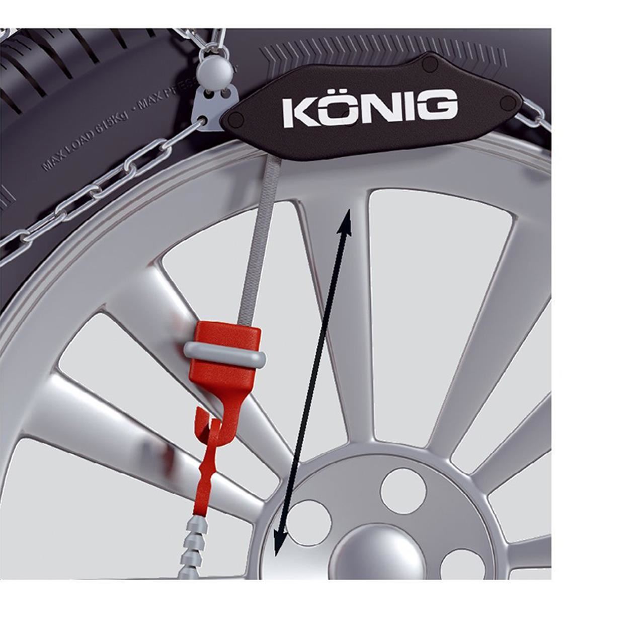 - Lanturile antiderapante König CG-9 permit un joc de 9 mm in spatele si pe suprafata de rulare a rotilor pentru protectia anvelopelor.