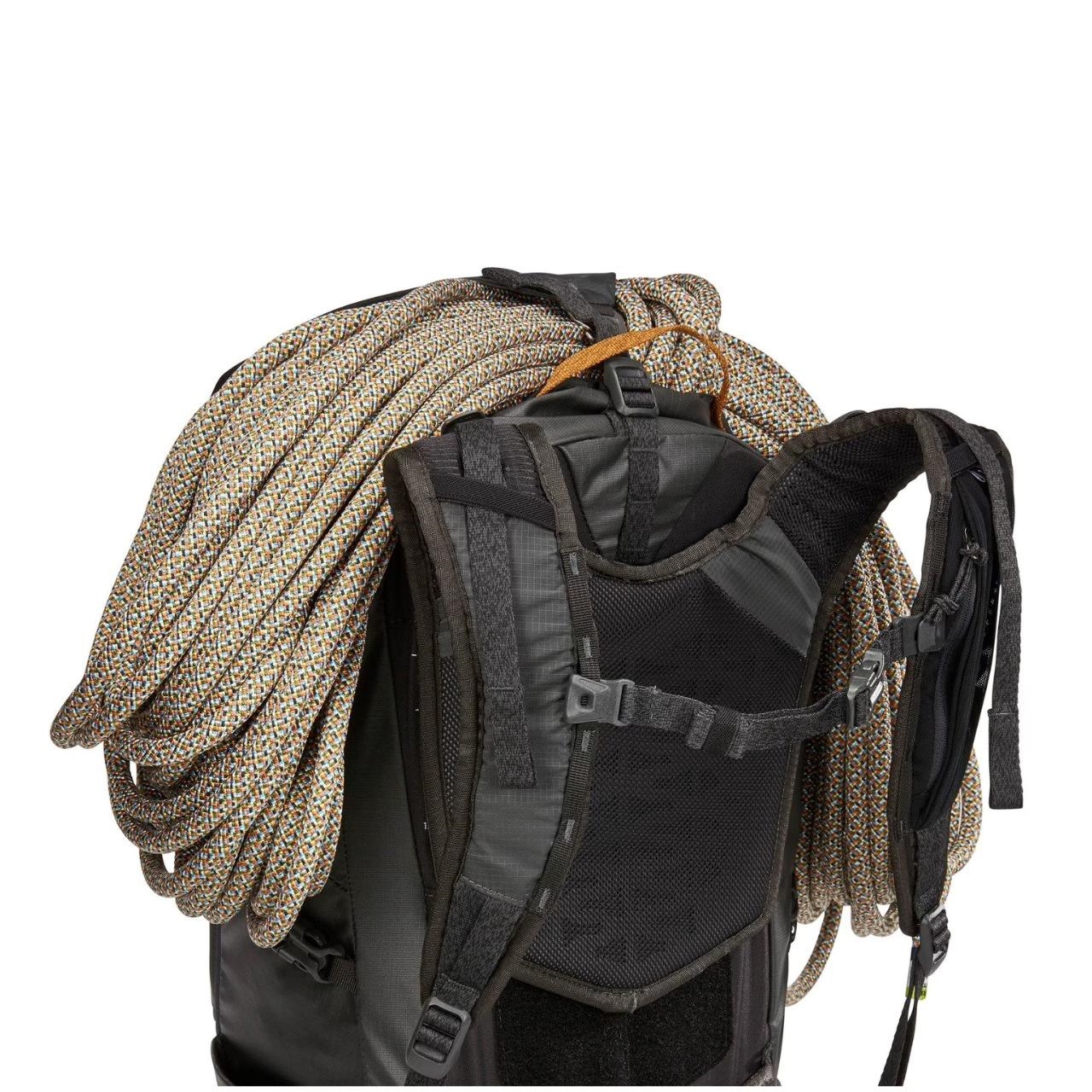 - Betele de drumetie sau pioletii pot fi atasati, cand nu sunt utilizati, de buclele speciale de prindere, situate pe partile laterale ale rucsacului.