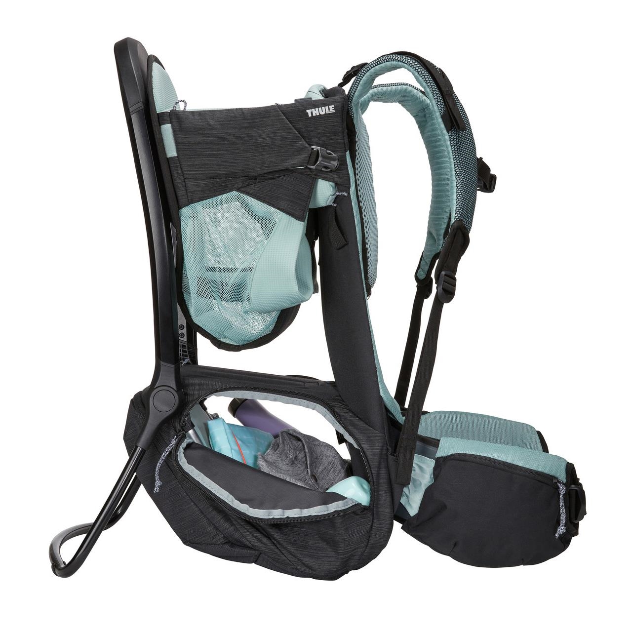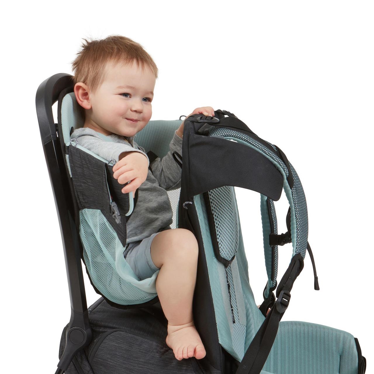 Panoul spate si centura soldurilor, complet ajustabile, asigura o potrivire perfecta pe corp, pentru un transport foarte confortabil si totodata, usureaza operatiunea de schimbare a rucsacului intre parinti.