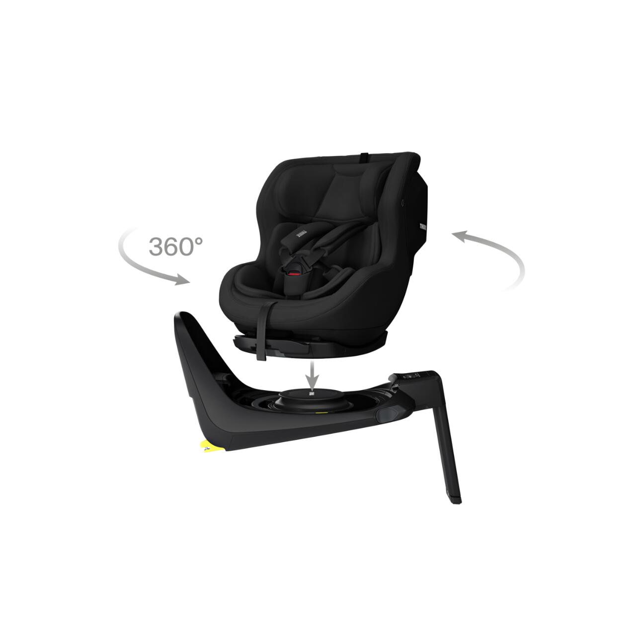Baza se roteste la 360/180 de grade, facilitand plasarea copilului in sau din scaun. Proiectat atat pentru instalare cu fata inainte, cat si spre spate, se adapteaza nevoilor copilului tau in crestere.