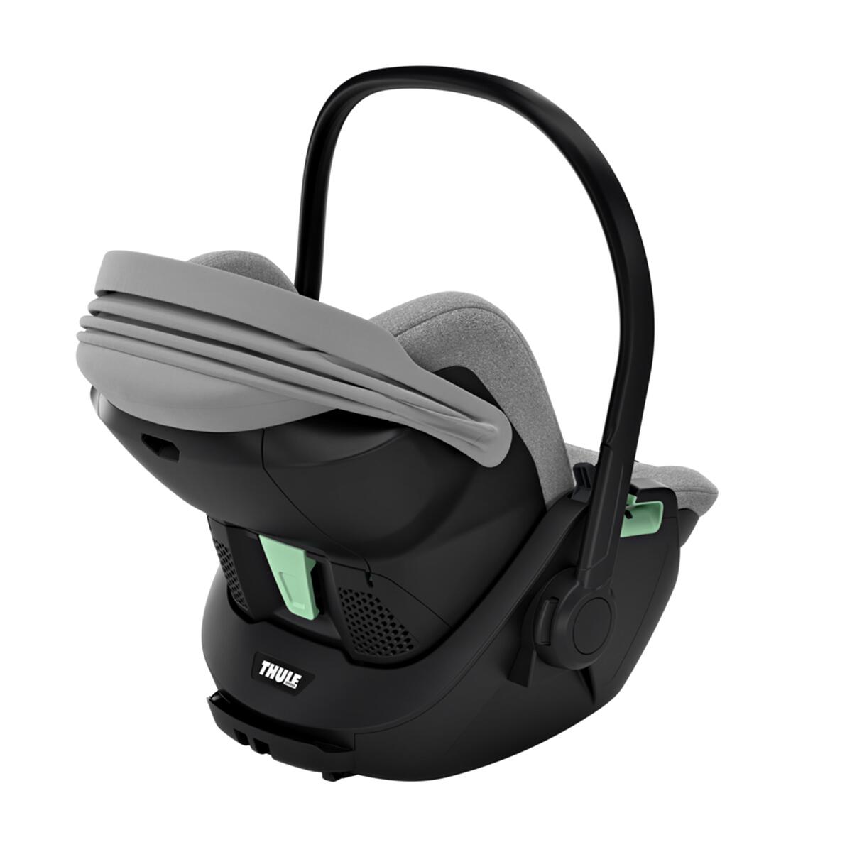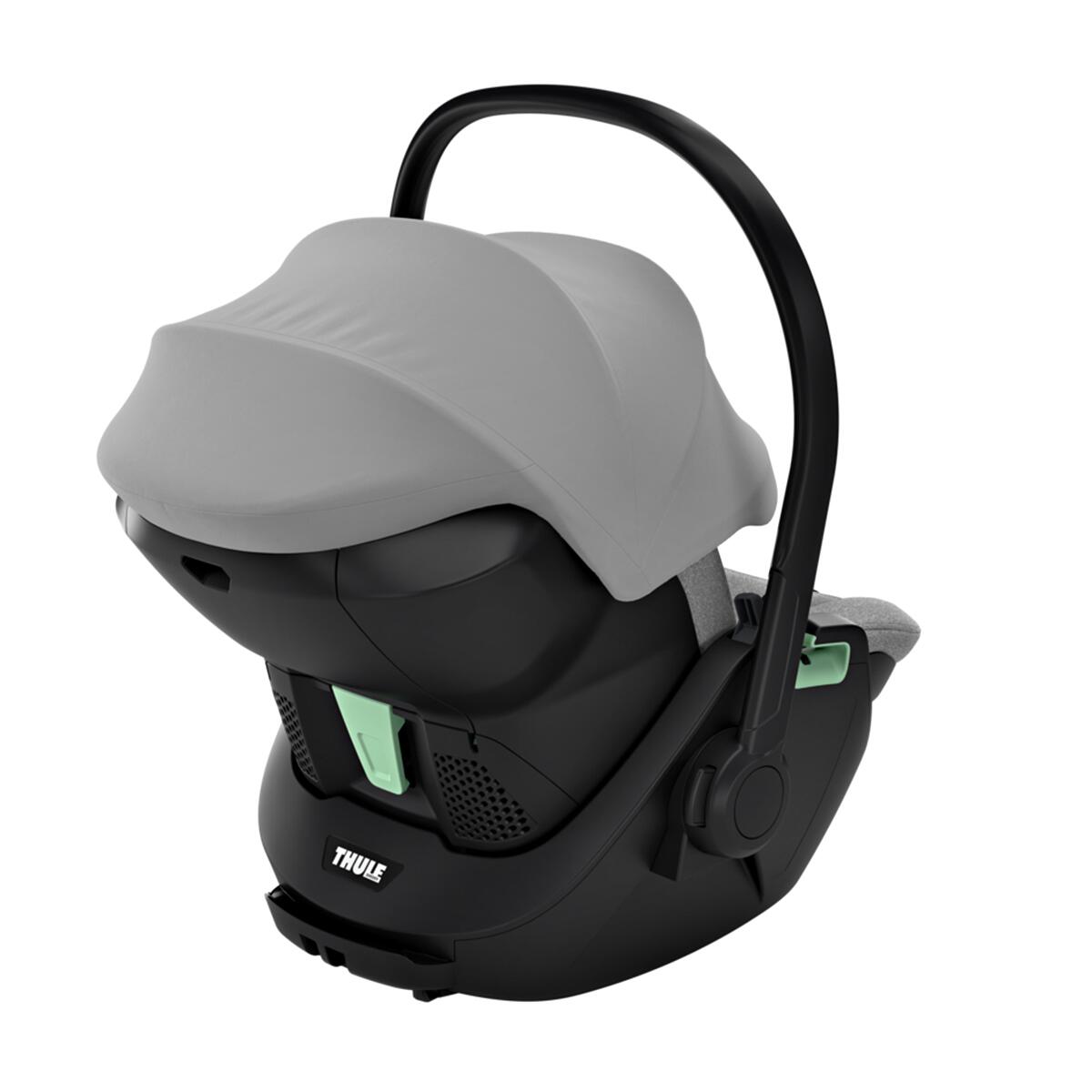• Scaunul auto Thule Maple are chei de eliberare usor de utilizat pe manerul de transport pentru detasarea rapida de carucior sau baza scaunului auto. Fara pozitii incomode sau eforturi - trebuie doar sa faceti clic pe ambele parti pentru a scoate scaunul fara effort