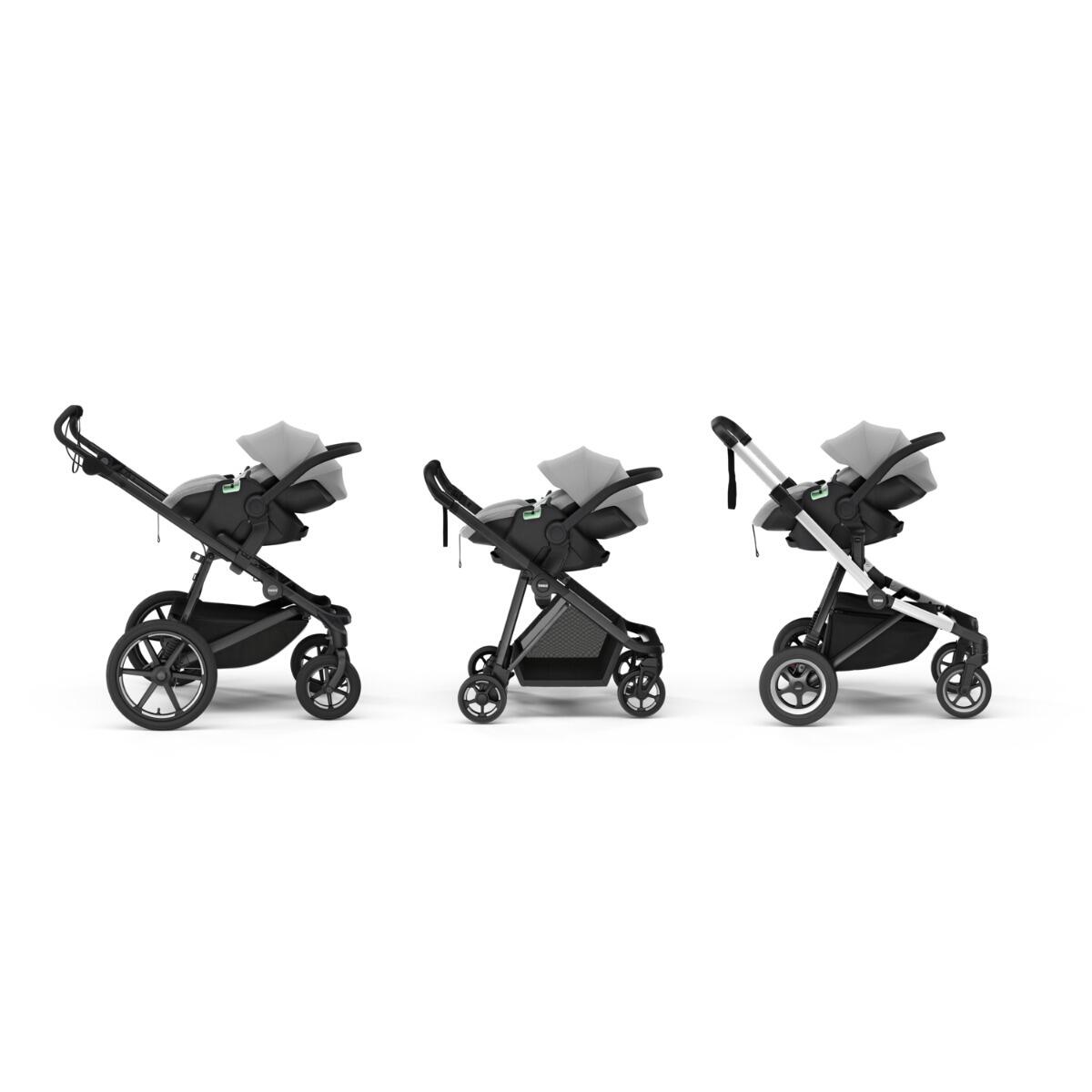 • Scoica se poate atașa la cărucioarele Thule pentru o tranziție ușoară între mașină și plimbare.