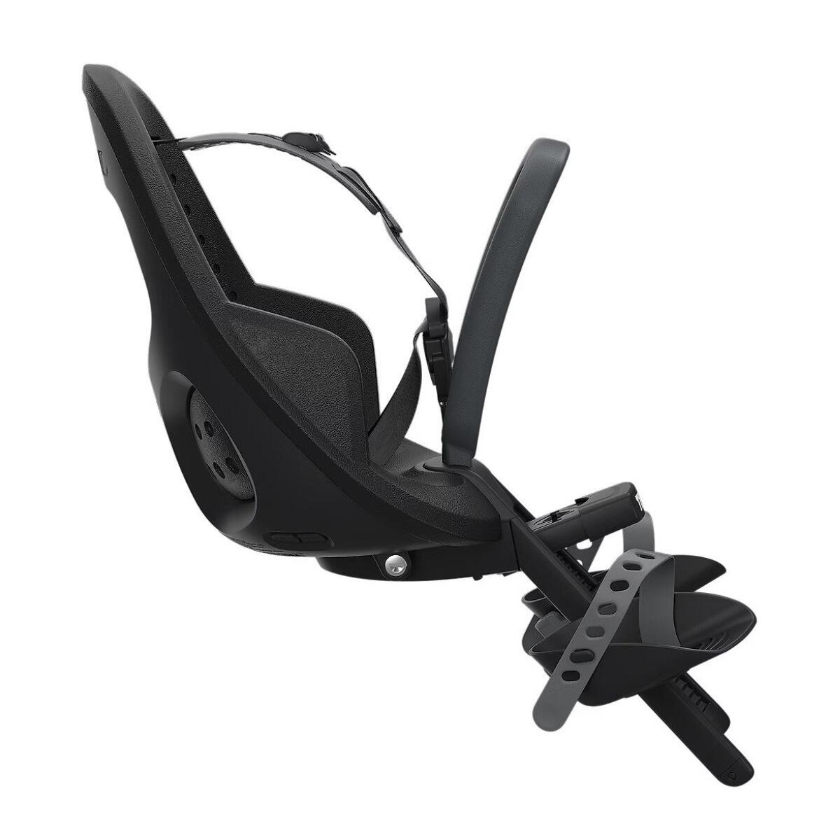 Scaunul poate fi montat/demontat de pe bicicleta in cateva secunde cu ajutorul suportului universal de eliberare rapida, care se potriveste atat la tija normala, cat si la cea din fata.