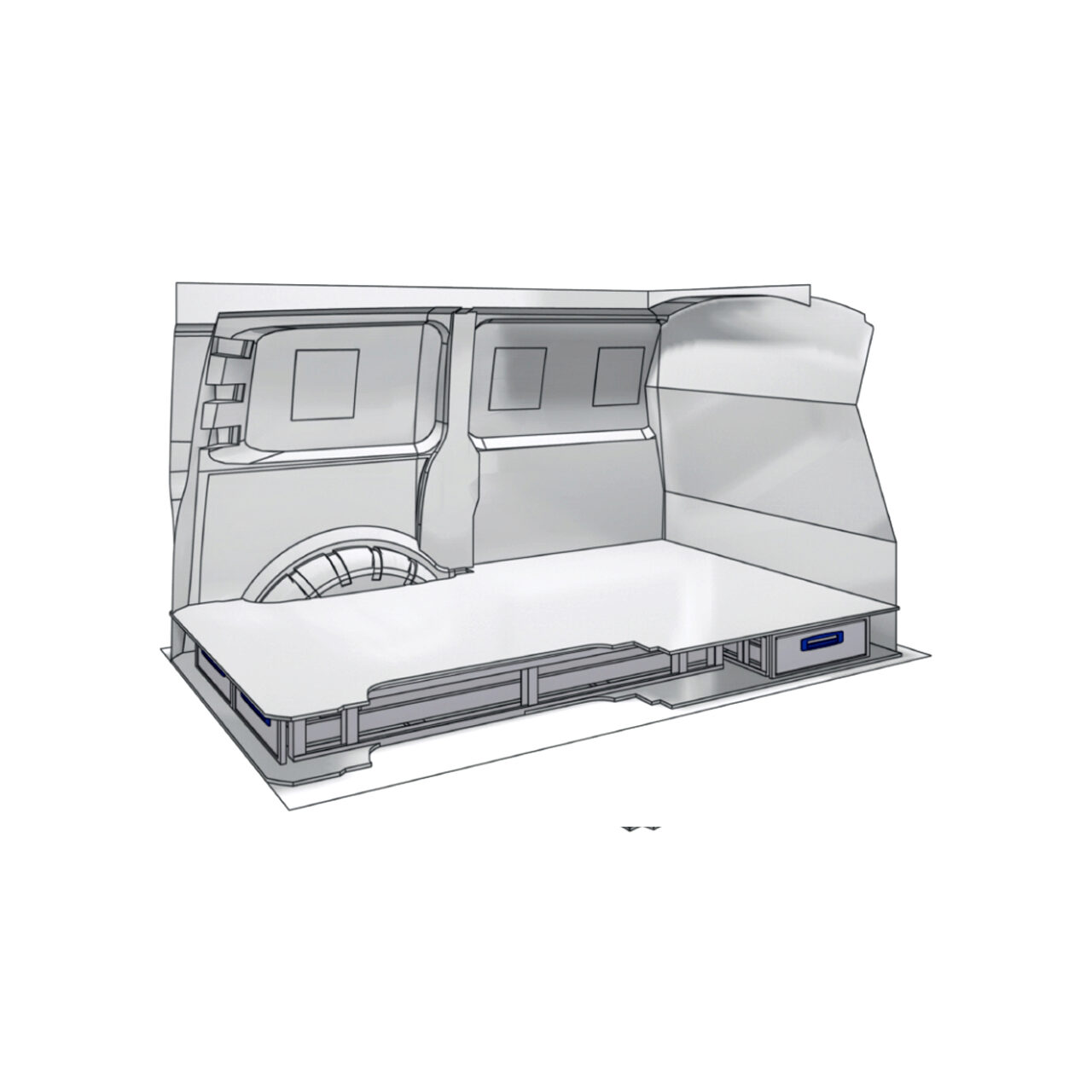 Sertarele de sub podea din acest Kit sunt concepute pentru majoritatea vehiculelor comerciale de dimensiuni medii, cum ar fi Mercedes Vito, VW Transporter sau Ford Custom, Toyota ProAce, sunt foarte utile pentru electricieni, instalatori, instalatori HVAC si orice alta profesie care necesita transportul sculelor si elementelor de asamblare intr-un mod sigur.