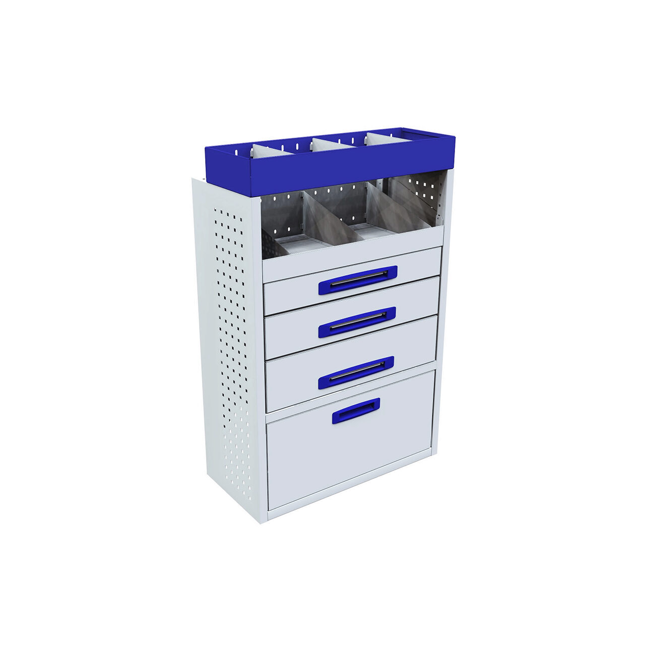 Modul cu clapa frontala, 3 sertare, raft de mijloc si raft superior cu separatoare