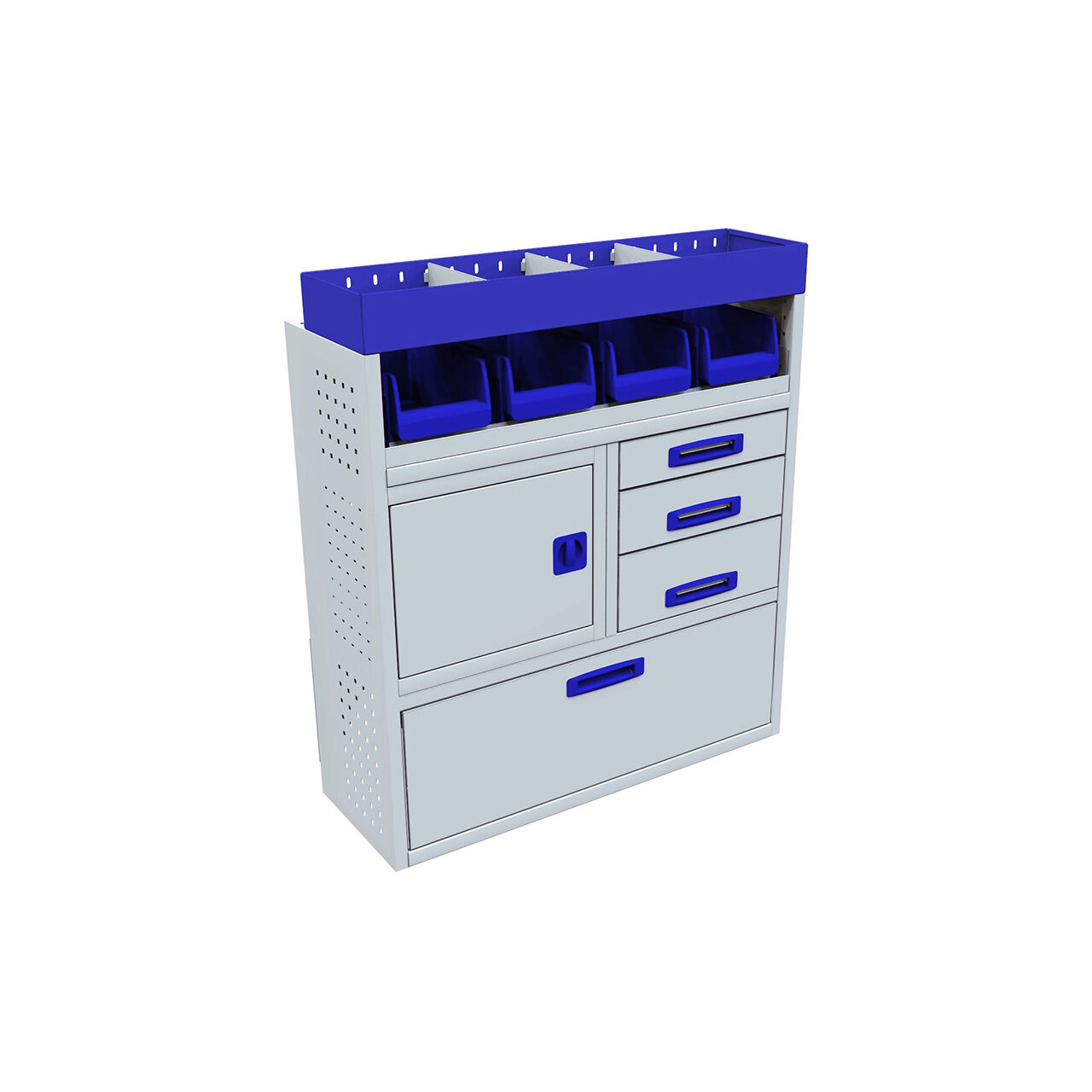 Modul cu clapa frontala, dulap blocabil, 3 sertare, suport pentru cutii si raft superior