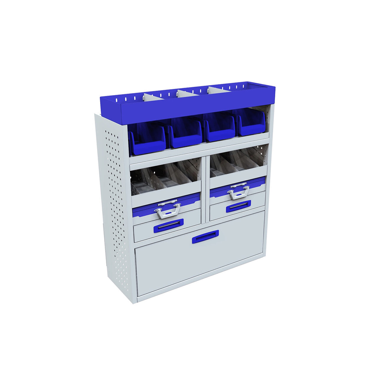 Modul cu clapa frontala, 2 sertare, 2 casete de service, 2 rafturi 0.5m, suport pentru cutii, raft superior