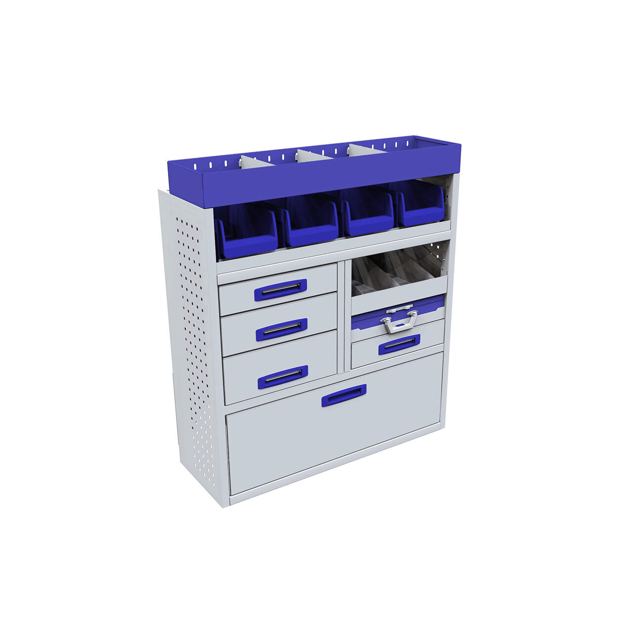 Modul cu clapa frontala, 4 sertare, caseta de service, raft 0.5m, suport pentru cutii, raft superior