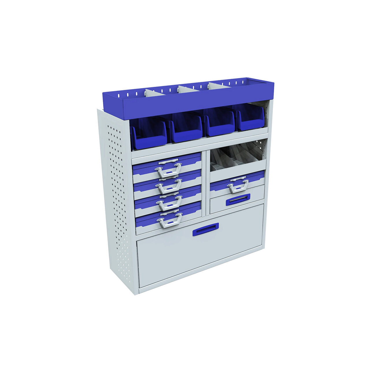 Modul cu clapa frontala, sertar, 5 casete de service, raft 0.5m, suport pentru cutii, raft superior