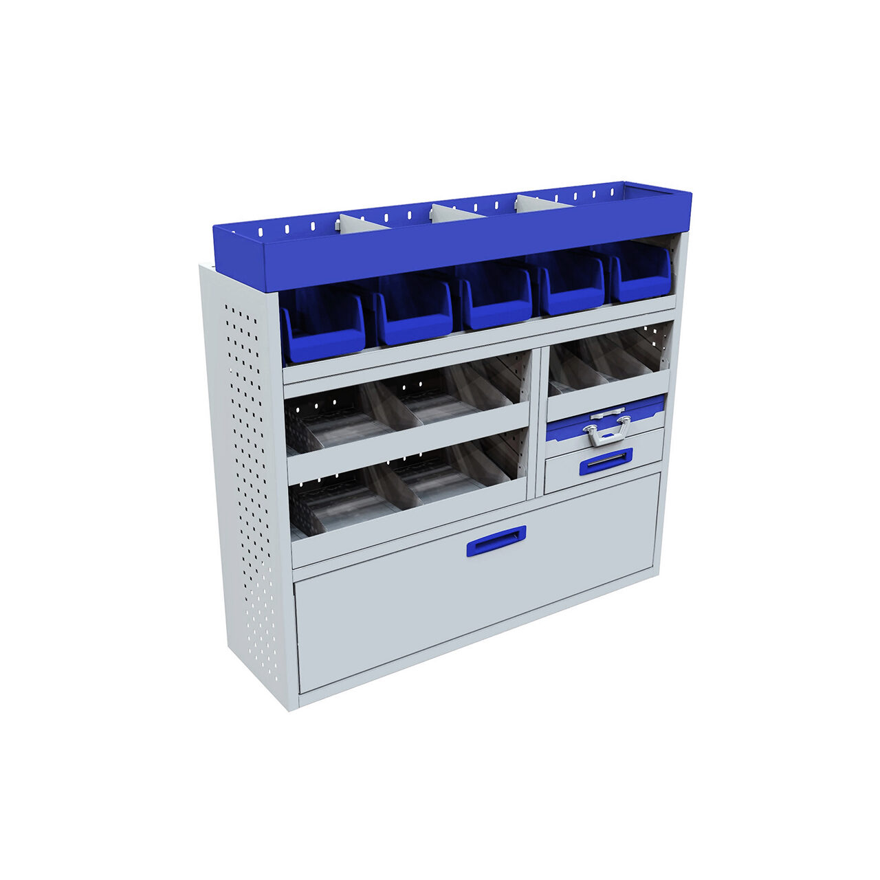 Modul cu clapa frontala, sertar, caseta de serviciu, 3 rafturi interioare, suport pentru cutii si raft superior