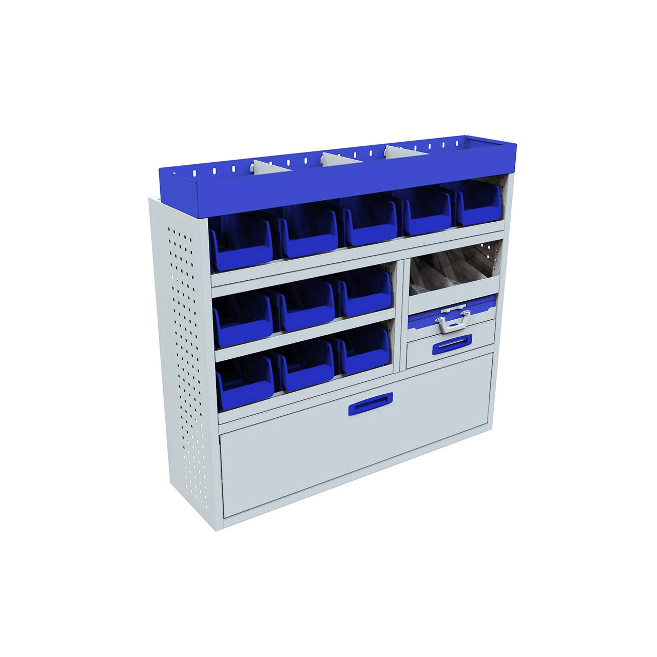 Modul cu clapa frontala, sertar, caseta de serviciu, raft interior, 3 suporturi pentru cutii si raft superior
