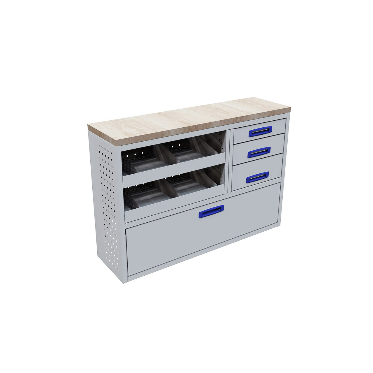 Modul cu clapa frontala, 3 sertare , 2 rafturi 0,75m si banc de lucru