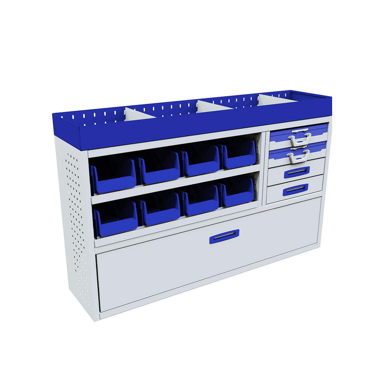 Modul cu clapa frontala, 2 sertare, 2 casete de serviciu, 2 suporturi pentru cutii și raft superior