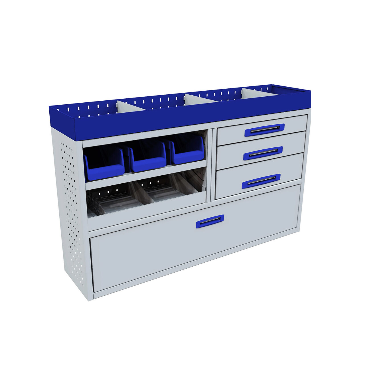 Modul cu clapa frontala, 3 sertare, raft interior, suport pentru cutii și raft superior