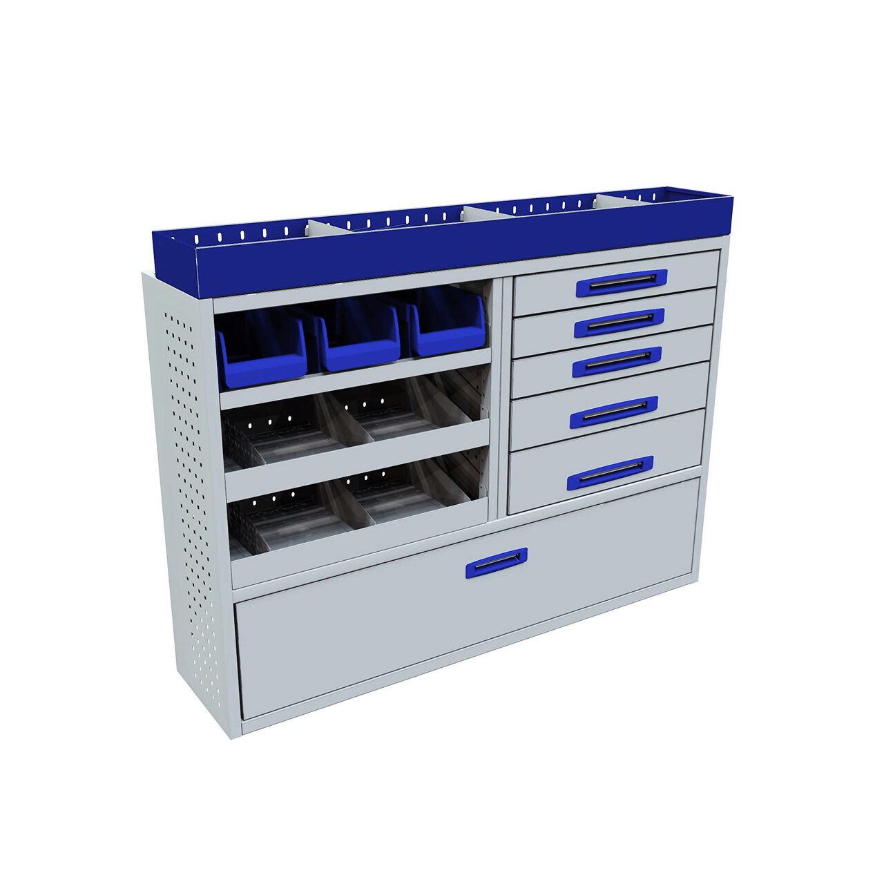Modul cu clapa frontala, 5 sertare, 2 rafturi interior, suport pentru cutii și raft superior