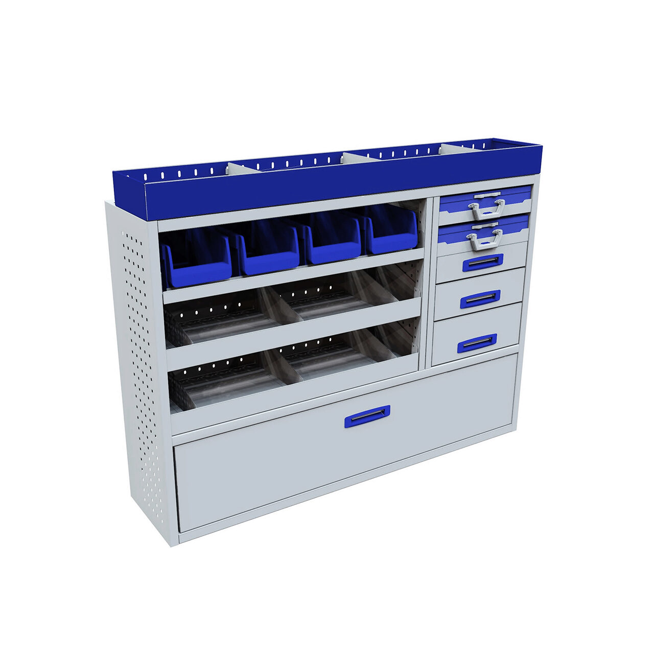 Modul cu clapa frontala, 3 sertare, 2 casete de serviciu, 2 rafturi interioare, suport pentru cutii și raft superior