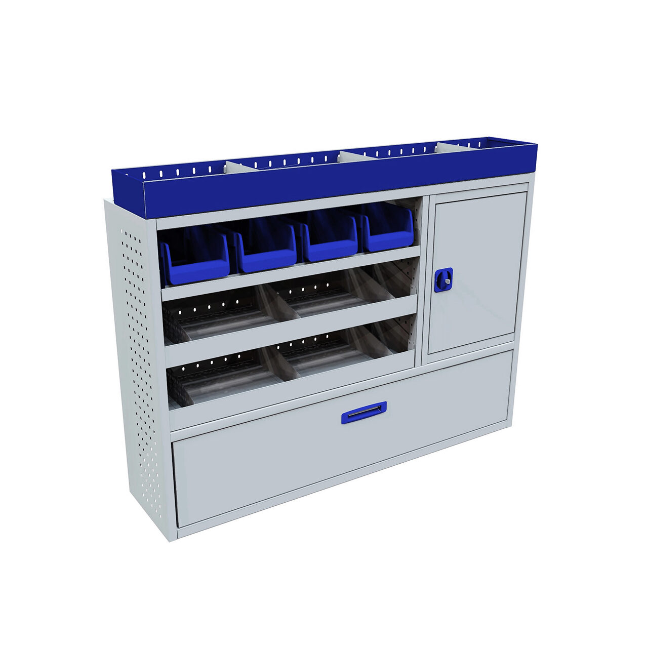 Modul cu clapa frontala, dulap , 2rafturi interioare, suport pentru cutii și raft superior
