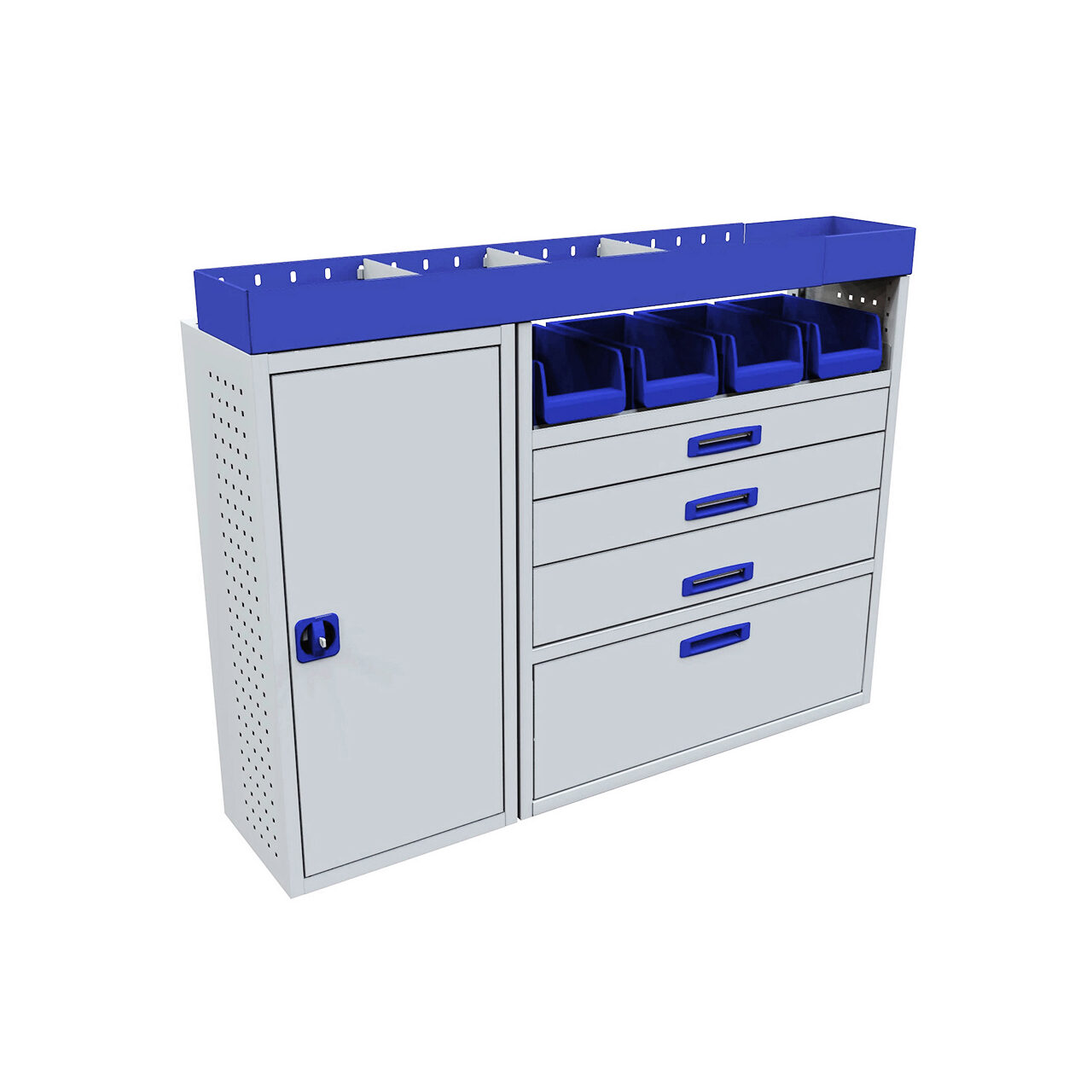 Modul cu clapa frontala, dulap, 3 sertare, suport pentru cutii și raft superior