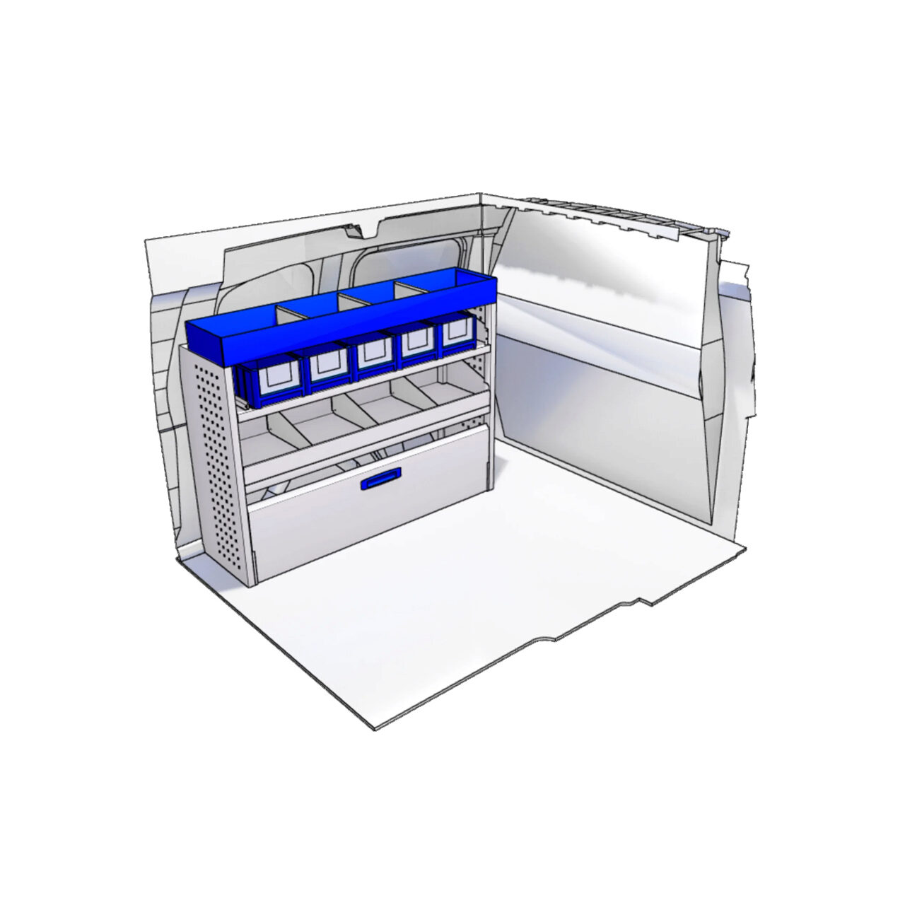 Proiectat pentru majoritatea vehiculelor comerciale mici, cum ar fi Volkswagen Caddy, Mercedes-Benz Citan, Ford Connect, este potrivita pentru electricieni, instalatori, instalatori si orice alta profesie care necesita transportul sculelor si elementelor de asamblare intr-un mod organizat si sigur.