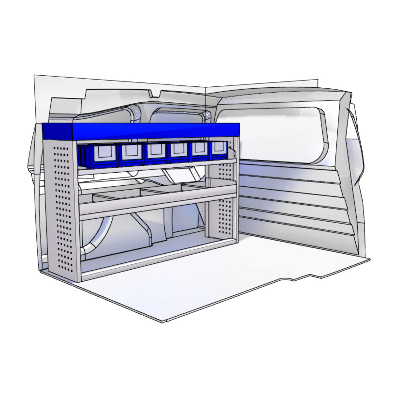 Proiectat pentru majoritatea vehiculelor comerciale mici, cum ar fi Volkswagen Caddy, Mercedes-Benz Citan, Ford Connect, este potrivita pentru electricieni, instalatori, instalatori si orice alta profesie care necesita transportul sculelor si elementelor de asamblare intr-un mod organizat si sigur.