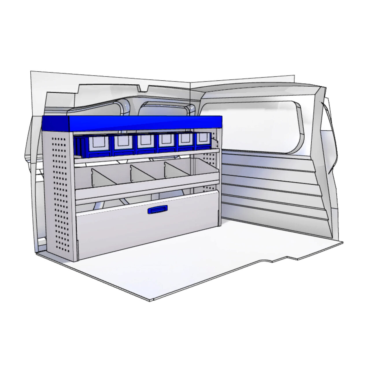 Proiectat pentru majoritatea vehiculelor comerciale mici, cum ar fi Volkswagen Caddy, Mercedes-Benz Citan, Ford Connect, este potrivita pentru electricieni, instalatori, instalatori si orice alta profesie care necesita transportul sculelor si elementelor de asamblare intr-un mod organizat si sigur.