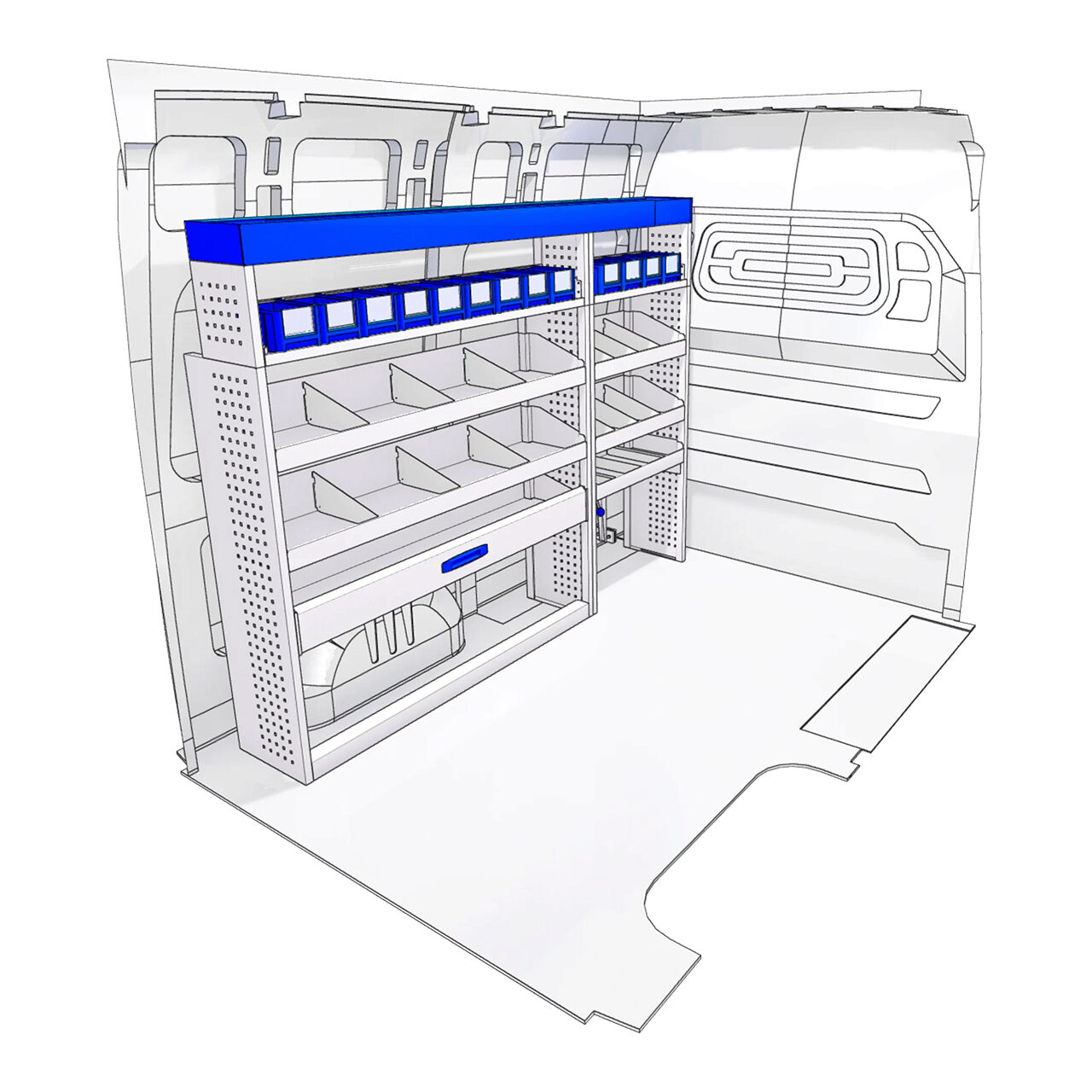 Corpuri tip atelier pentru vehicule comerciale mari, cum ar fi Mercedes Sprinter, VW Crafter, Fiat Ducato sau Ford Transit, care va permit sa le transformati in ateliere de dimensiuni mari si echipate.