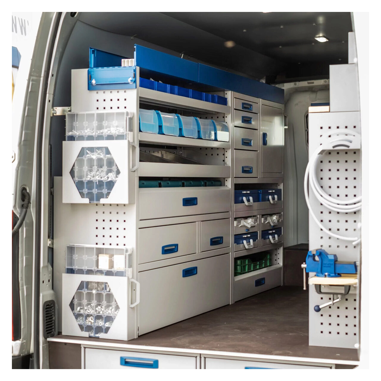 Prin transformarea autoutilitarei intr-un atelier mobil, puteti lua cu dvs. toate uneltele si echipamentele de care aveti nevoie si puteti efectua lucrari de reparatii si intretinere oriunde.