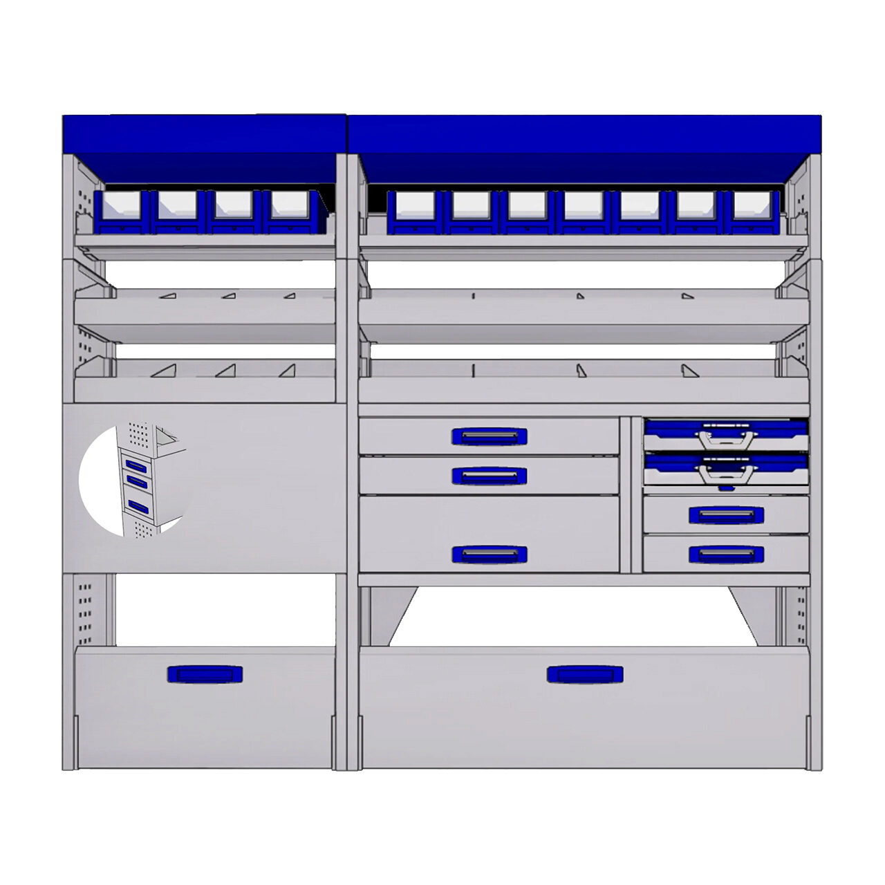 Corpuri tip atelier pentru vehicule comerciale mari, cum ar fi Mercedes Sprinter, VW Crafter, Fiat Ducato sau Ford Transit, care va permit sa le transformati in ateliere de dimensiuni mari si echipate.