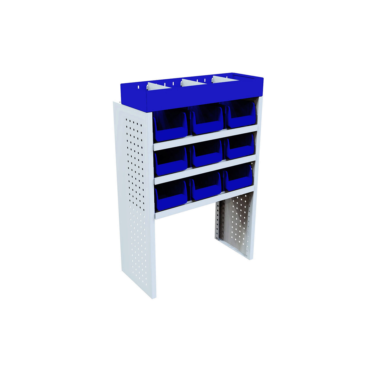 Modul cu 3 rafturi pentru cutii si un raft superior cu separatoare