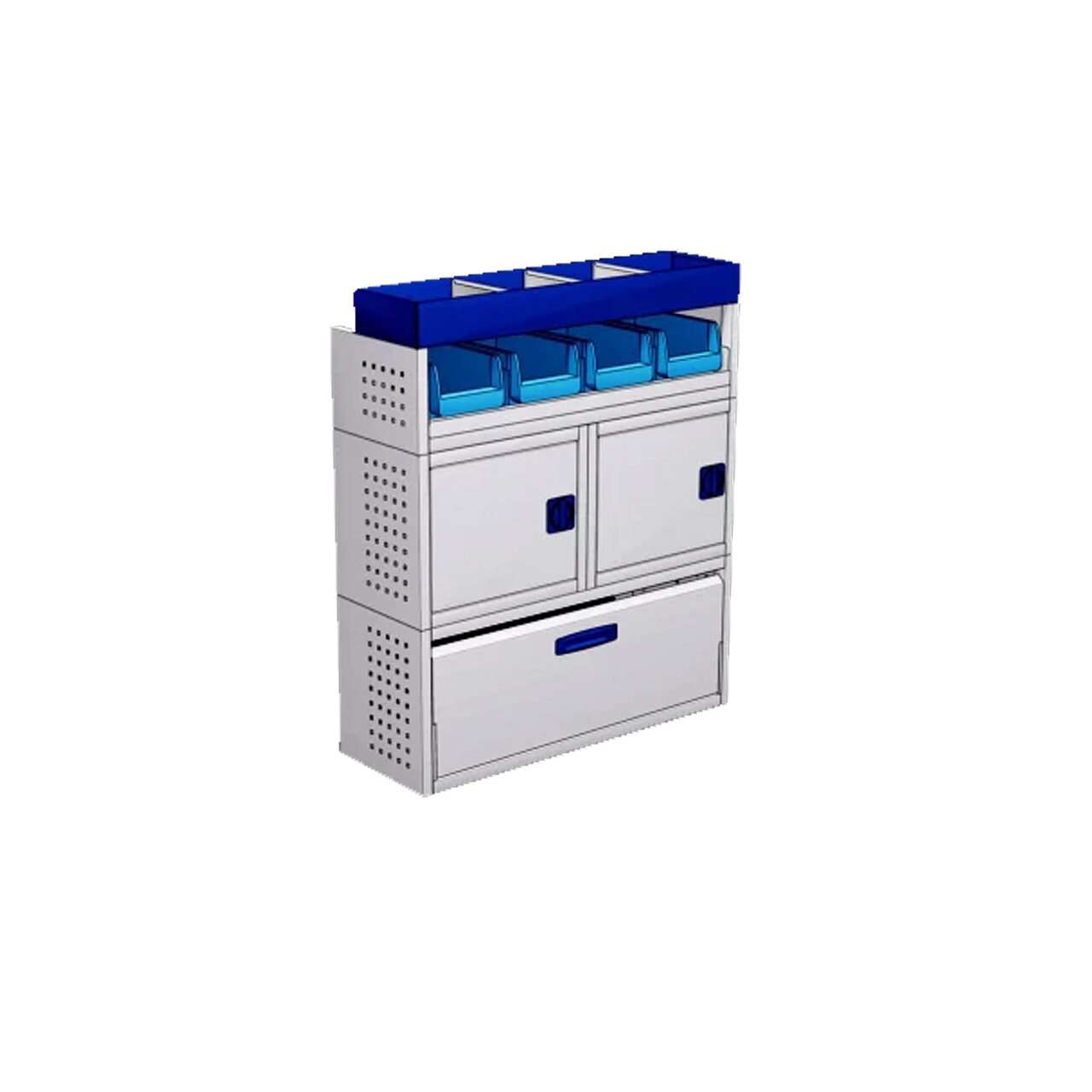 Modul cu clapa frontala, 2 dulapuri, suport pentru cutii si raft superior