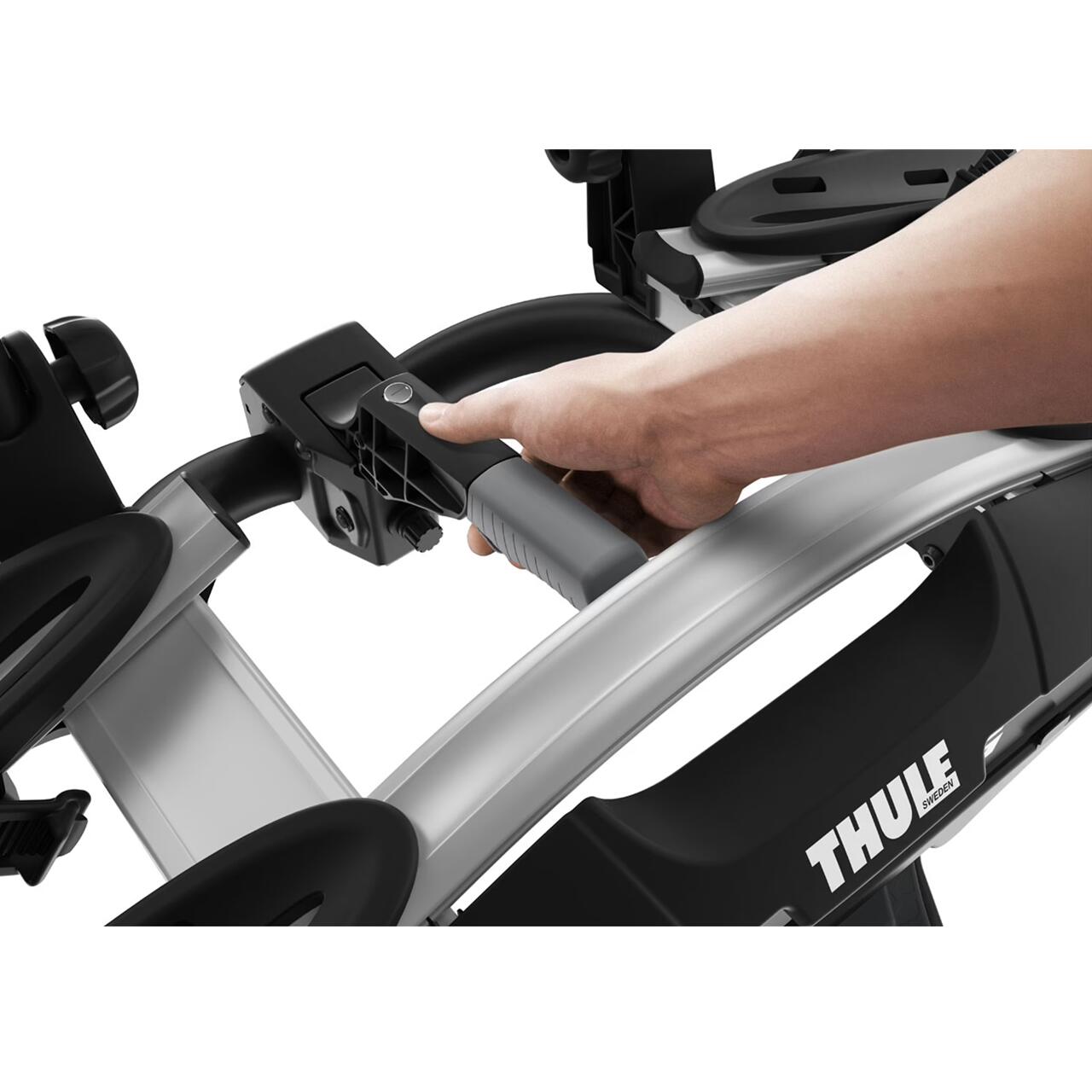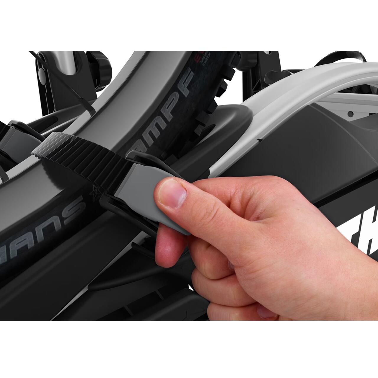 Bratele detasabile de fixare se pot monta si demonta cu mare usurinta, scurtand timpul de fixare a bicicletelor pe suport. Cu o suprafata de contact din cauciuc, pentru a proteja bicicletele, acestea pot fixa cadre de pana la 80mm. Optional, se poate achizitiona noul sistem de prindere a cadrului bicicletei, Thule AcuTight Knob 528, ce are incorporat un limitator al cuplului de strangere cu click, pentru o fixare optima a bicicletei de suport. De asemeni, are si rol antifurt prin incuierea sa cu cheia.