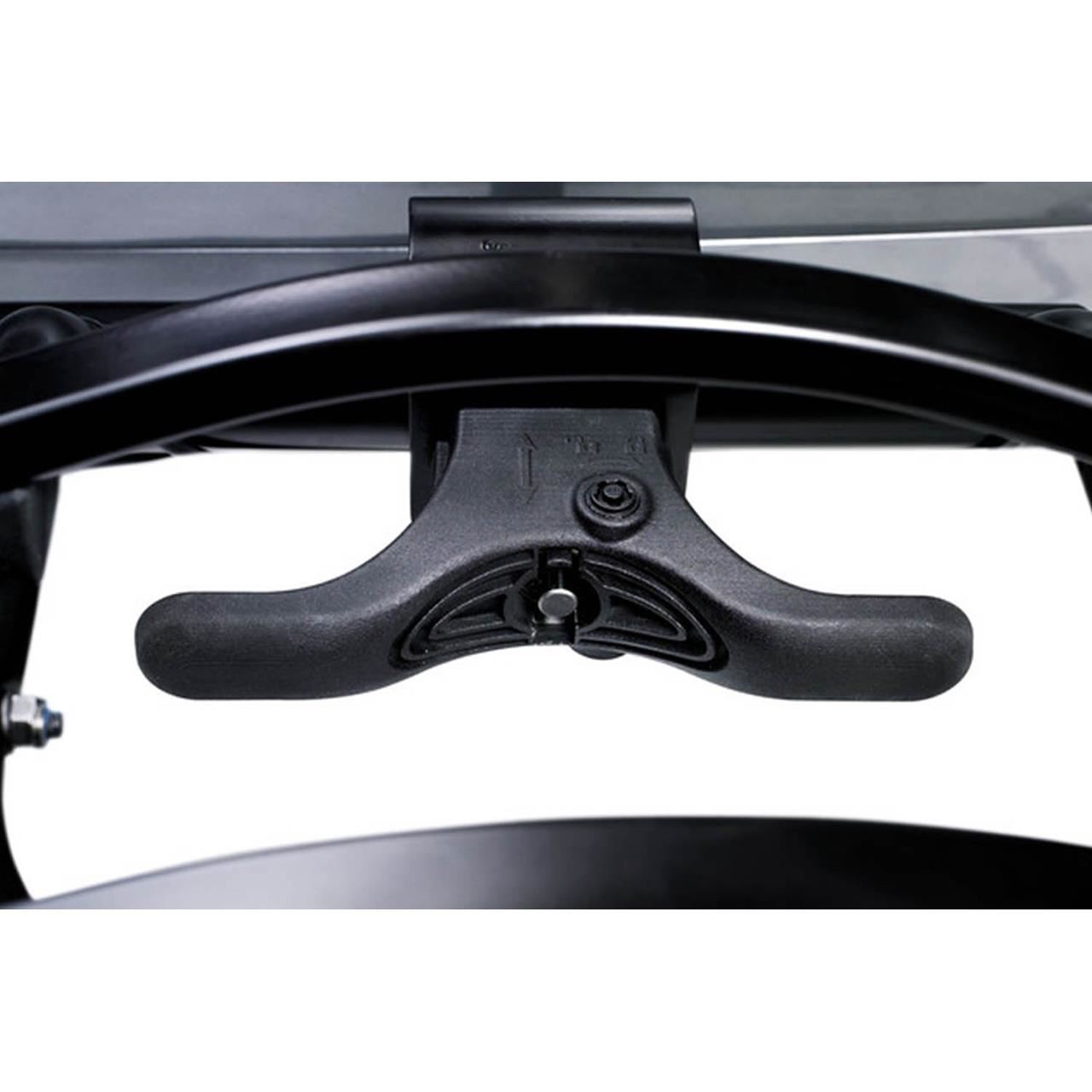 Cadrul suportului Thule EuroRide 943, rabateaza pentru a facilita o mai usoara depozitare.