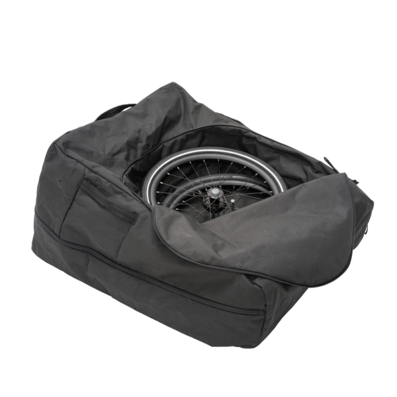 Geanta de transport pentru protejarea caruciorului multisport Thule Chariot, cu compartiment interior separat pentru roti.