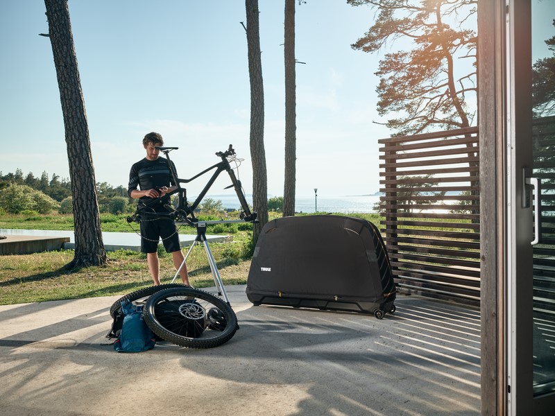- Fixati cu usurinta bicicleta pe standul de lucru din interiorul carcasei pentru un transport sigur